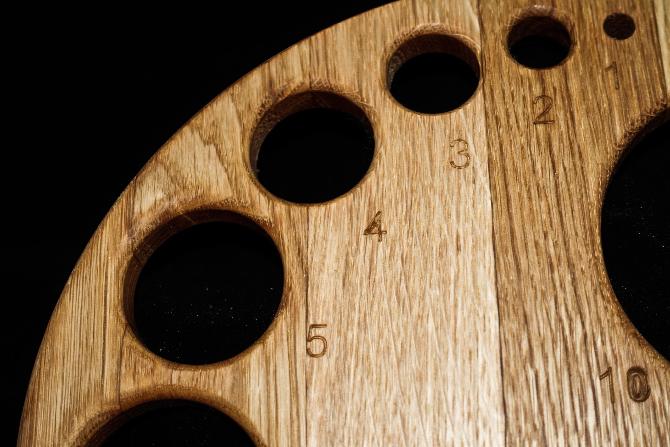 Das Board hat eingravierte Zahlen neben jedem Loch, die die Öffnungsgrösse angeben.